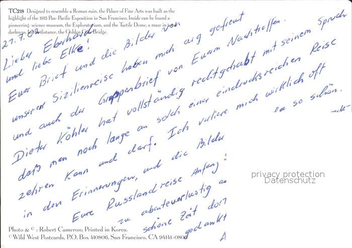 72239939 San Francisco California Roman ruin Palace Fine Arts Golden Gate Bridge postalisch nicht gelaufen Erhaltung siehe scans KatCode: 14140050000000