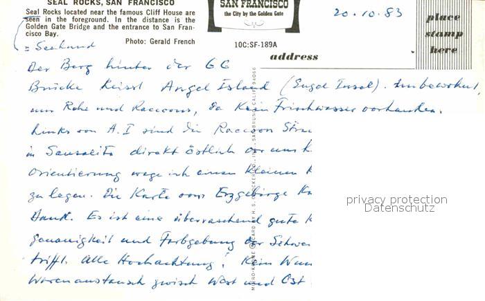 72650616 San Francisco California Seal Rocks and Golden Gate Bridge postalisch nicht gelaufen Erhaltung siehe scans [LiesaD40] KatCode: 14140050000000