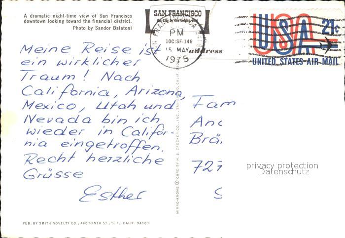 72582804 old postcard San Francisco California Skyline at Night postalisch gelaufen Erhaltung siehe scans [LiesaD40] KatCode: 14140050000000