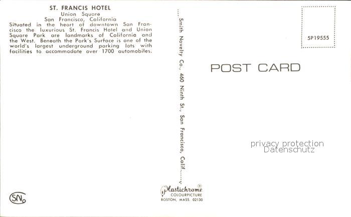 11696973 San Francisco California St. Francis Hotel postalisch nicht gelaufen Erhaltung siehe scans KatCode: 14140050000000