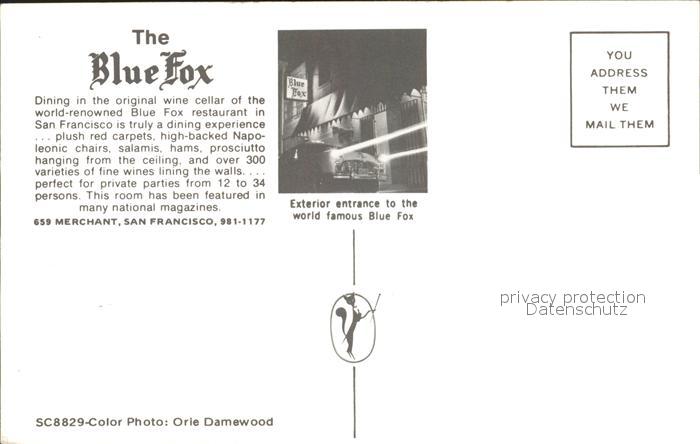 72064186 San Francisco California The Blue Fox Restaurant postalisch nicht gelaufen Erhaltung siehe scans KatCode: 14140050000000