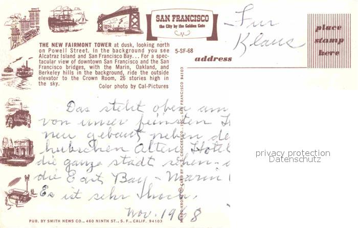 72789055 San Francisco California The Fairmont Tower at night postalisch nicht gelaufen Erhaltung siehe scans [FriedD77] KatCode: 14140050000000