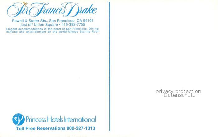 73764078 San Francisco California The Sir Francis Drake postalisch nicht gelaufen Erhaltung siehe scans [WerneD78] KatCode: 14140050000000