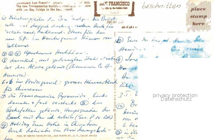72645244 old postcard San Francisco California Transamerica Building Bay Bridge postalisch gelaufen Erhaltung siehe scans [WerneD78] KatCode: 14140050000000