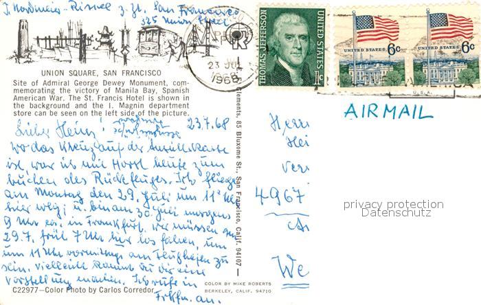 73130601 old postcard San Francisco California Union Square postalisch gelaufen Erhaltung siehe scans [KathaD81] KatCode: 14140050000000