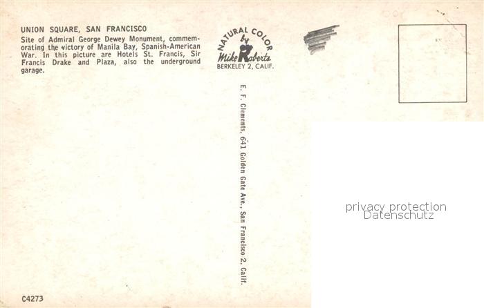 73130565 San Francisco California Union Square Admiral George Dewey Monument postalisch nicht gelaufen Erhaltung siehe scans [KathaD81] KatCode: 14140050000000