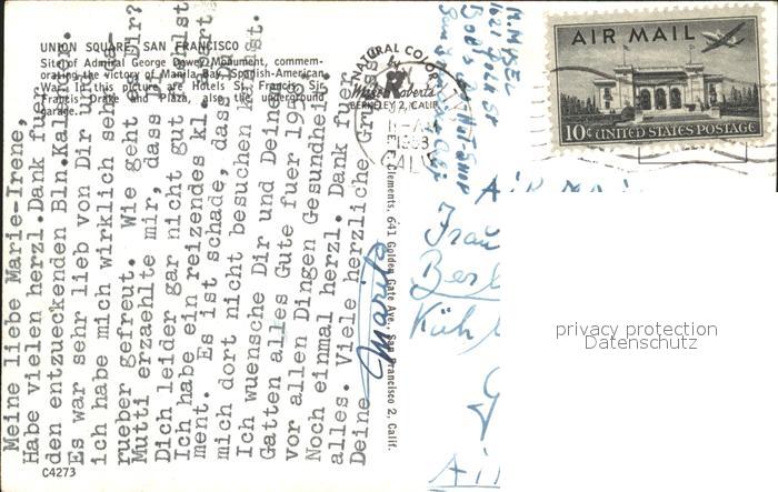 72228580 old postcard San Francisco California Union Square Hotel St Francis Park postalisch gelaufen Erhaltung siehe scans KatCode: 14140050000000
