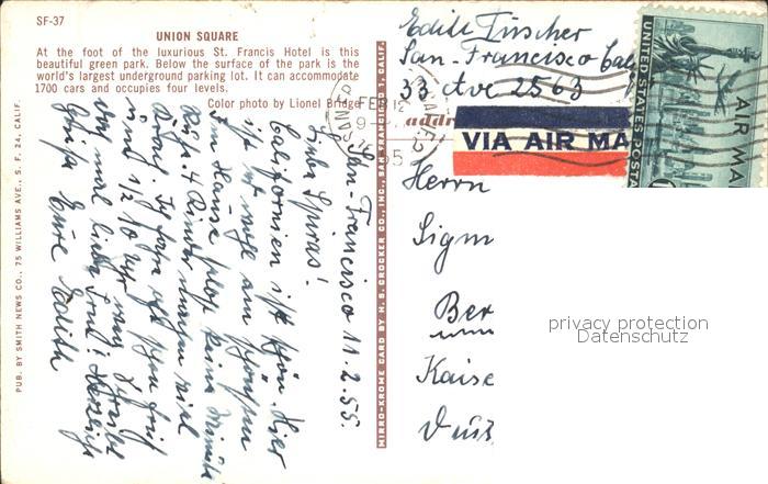 72228577 old postcard San Francisco California Union Square St Francis Hotel Park postalisch gelaufen Erhaltung siehe scans KatCode: 14140050000000
