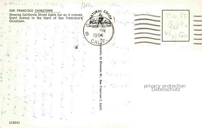 74128751 old postcard SAN FRANCISCO California USA Chinatown California Street Cable Car Grant Avenue postalisch gelaufen Erhaltung siehe scans [FriedD77] KatCode: 14140050000000