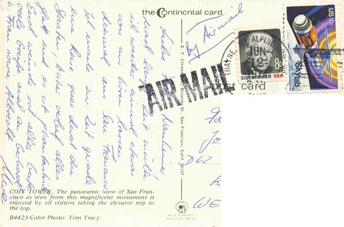 74143772 old postcard SAN FRANCISCO California USA Coit Tower postalisch gelaufen Fliegeraufnahme Erhaltung siehe scans [IrynaD87] KatCode: 14140050000000