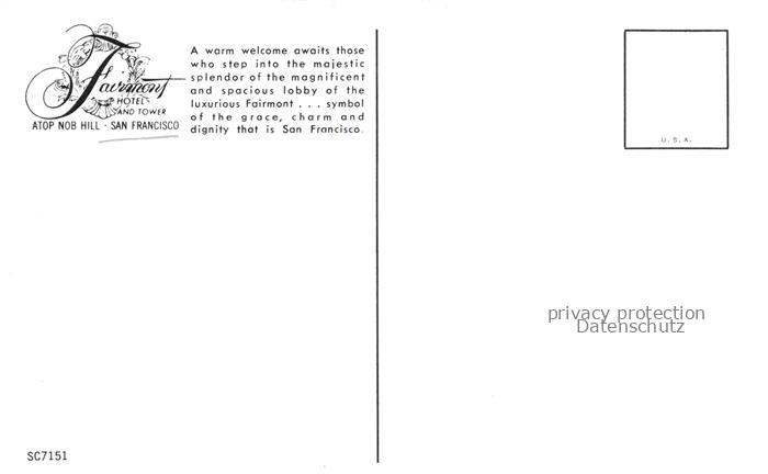 74141668 SAN FRANCISCO California USA Fairmont Hotel Foyer postalisch nicht gelaufen Erhaltung siehe scans [WerneD78] KatCode: 14140050000000