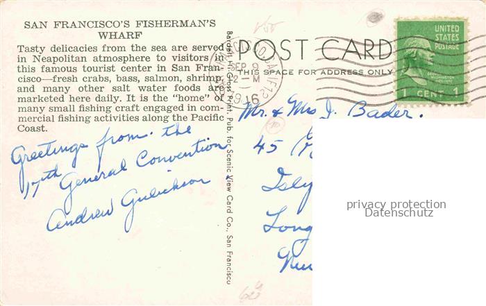 74043345 old postcard SAN FRANCISCO California USA Fisherman’s Wharf postalisch gelaufen Erhaltung siehe scans [FriedD77] KatCode: 14140050000000