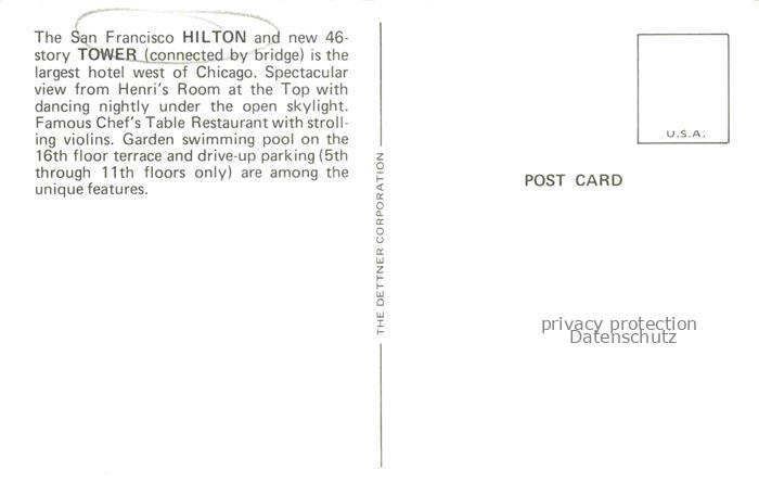 74141666 SAN FRANCISCO California USA Hilton and new 46 story Tower postalisch nicht gelaufen Erhaltung siehe scans [WerneD78] KatCode: 14140050000000