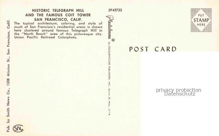 74021123 SAN FRANCISCO California USA Historic Telegraph Hill and Coit Tower aerial view postalisch nicht gelaufen Fliegeraufnahme Erhaltung siehe scans [FriedD77] KatCode: 14140050000000