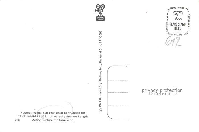 74091279 SAN FRANCISCO California USA Recreating the San Francisco Earthquake for The Immigrants postalisch nicht gelaufen Erhaltung siehe scans [WerneD78] KatCode: 14140050000000