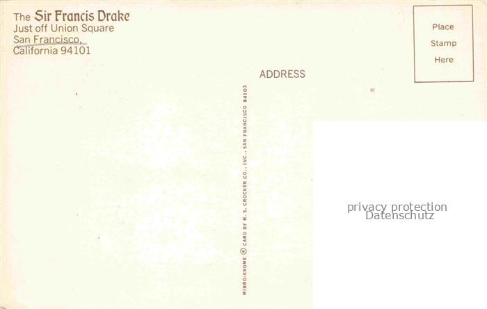 74043809 SAN FRANCISCO California USA The Sir Francis Drake Just off Union Square postalisch nicht gelaufen Erhaltung siehe scans [WerneD78] KatCode: 14140050000000