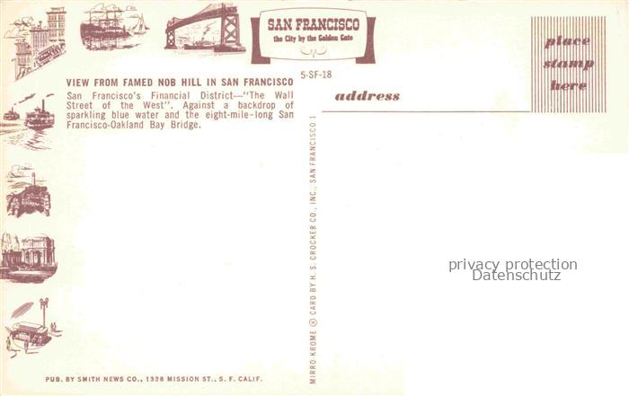 74021135 SAN FRANCISCO California USA View from famed Nob Hill Financial District Oakland Bay Bridge postalisch nicht gelaufen Erhaltung siehe scans [FriedD77] KatCode: 14140050000000