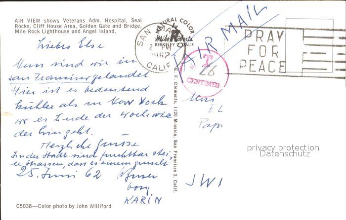 11693847 old postcard San Francisco California Veterans Adm Hospital Seal Rocks Golden Gate Bridge aerial view postalisch gelaufen Erhaltung siehe scans KatCode: 14140050000000