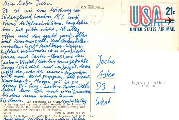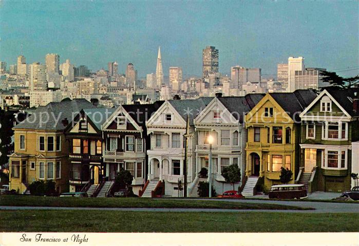 72743626 old postcard San Francisco California Victorian Houses and Skyline postalisch gelaufen Erhaltung siehe scans [LiesaD40] KatCode: 14140050000000