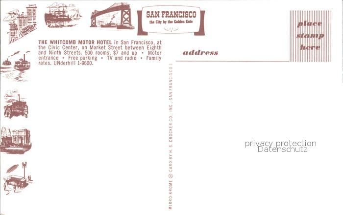 72306851 San Francisco California Whitcomb Motor Hotel postalisch nicht gelaufen Erhaltung siehe scans KatCode: 14140050000000