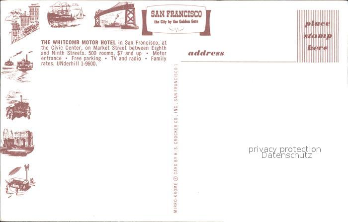 72306857 San Francisco California Whitcomb Motor Hotel postalisch nicht gelaufen Erhaltung siehe scans KatCode: 14140050000000