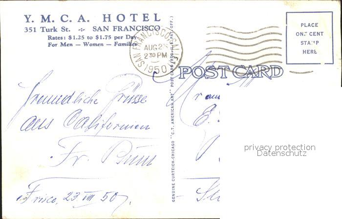 11688575 old postcard San Francisco California YMCA Hotel Lobby and Lounge postalisch gelaufen Erhaltung siehe scans KatCode: 14140050000000