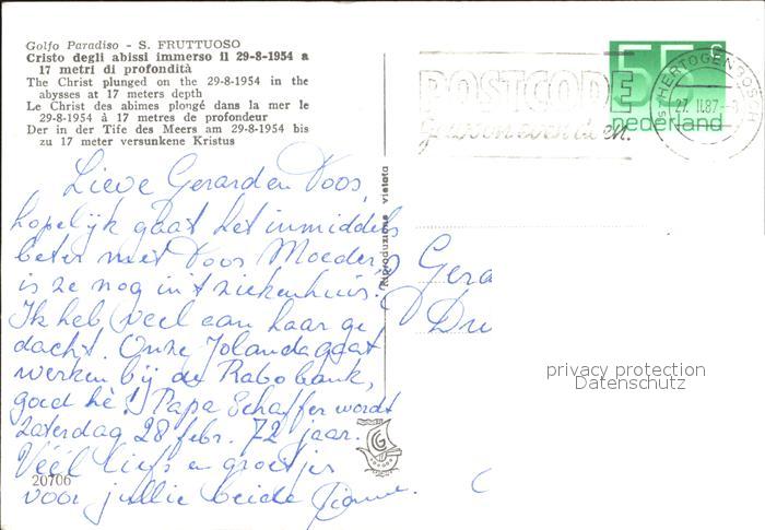 old postcard San Fruttuoso Versunkene Kristus postalisch gelaufen Erhaltung siehe scans
