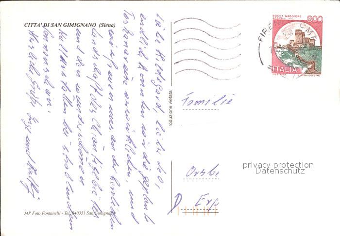 old postcard San Gimignano Citta Historischer Stadtkern postalisch gelaufen Erhaltung siehe scans