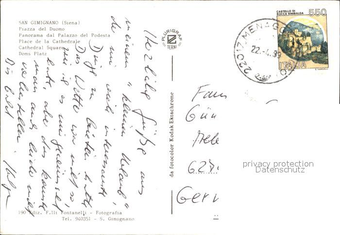 old postcard San Gimignano Dom Platz postalisch gelaufen Erhaltung siehe scans