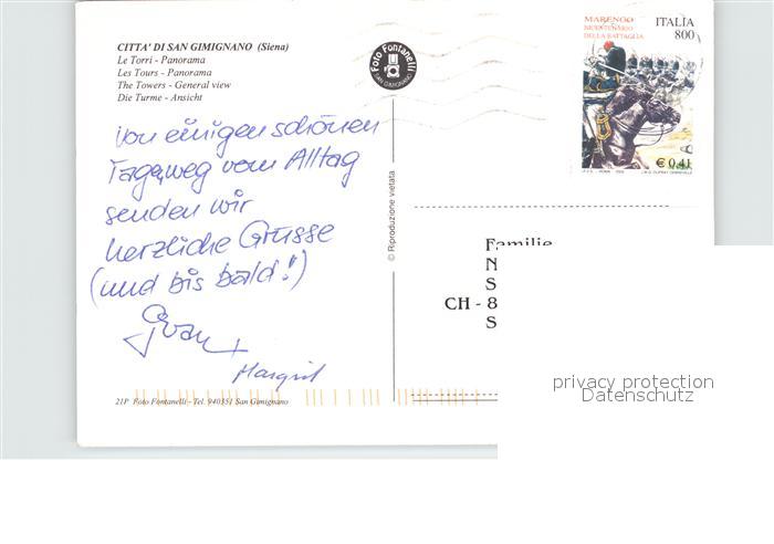 old postcard San Gimignano Le Torri Panorama della Citta postalisch gelaufen Erhaltung siehe scans [FriedD77]