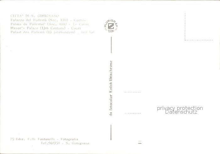 San Gimignano Palast Podesta Hof postalisch nicht gelaufen Erhaltung siehe scans