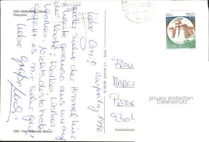 old postcard San Gimignano Panorama Altstadt postalisch gelaufen Erhaltung siehe scans