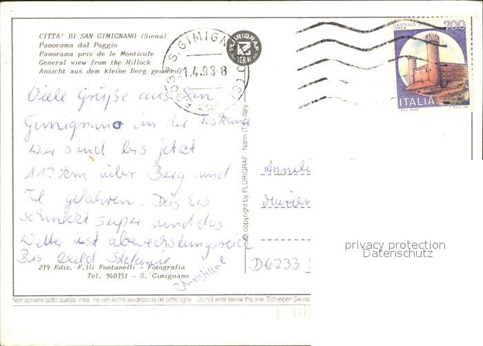 old postcard San Gimignano Panorama dal Poggio postalisch gelaufen Erhaltung siehe scans