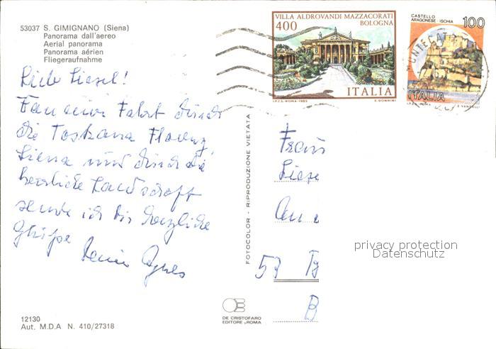 old postcard San Gimignano Panorama dall aereo postalisch gelaufen Erhaltung siehe scans
