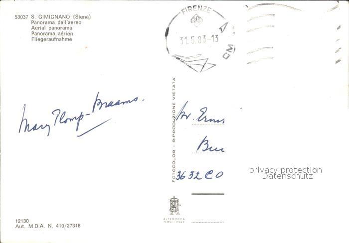 old postcard San Gimignano Panorama Luftaufnahme postalisch gelaufen Erhaltung siehe scans [KathaD75 kv015box]