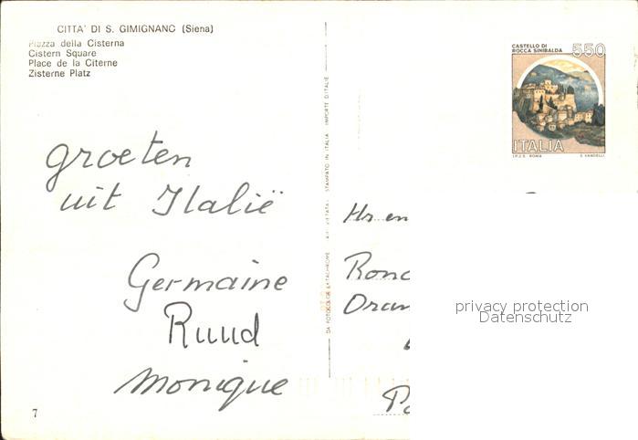old postcard San Gimignano Piazza della Cisterna postalisch gelaufen Erhaltung siehe scans