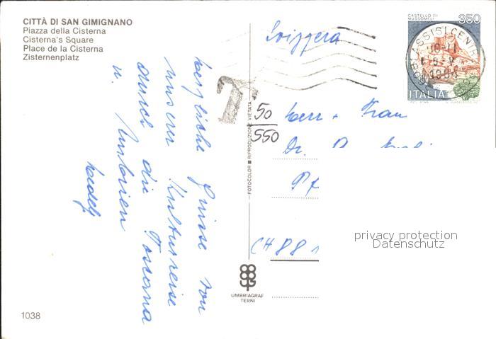 old postcard San Gimignano Piazza della Cisterna postalisch gelaufen Erhaltung siehe scans