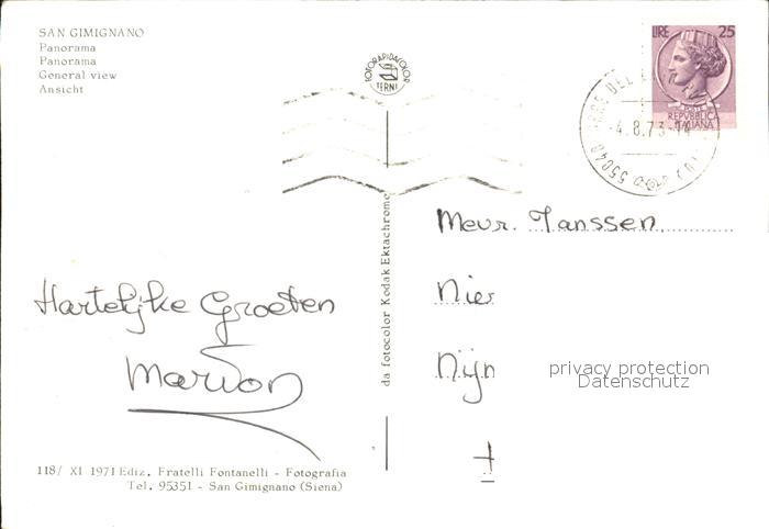 old postcard San Gimignano Teilansicht postalisch gelaufen Erhaltung siehe scans
