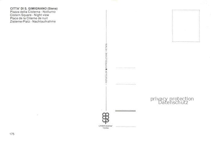 74015070 San Gimignano Toscana IT Piazza della Cisterne notturna postalisch nicht gelaufen Erhaltung siehe scans [FriedD77] KatCode: 11240