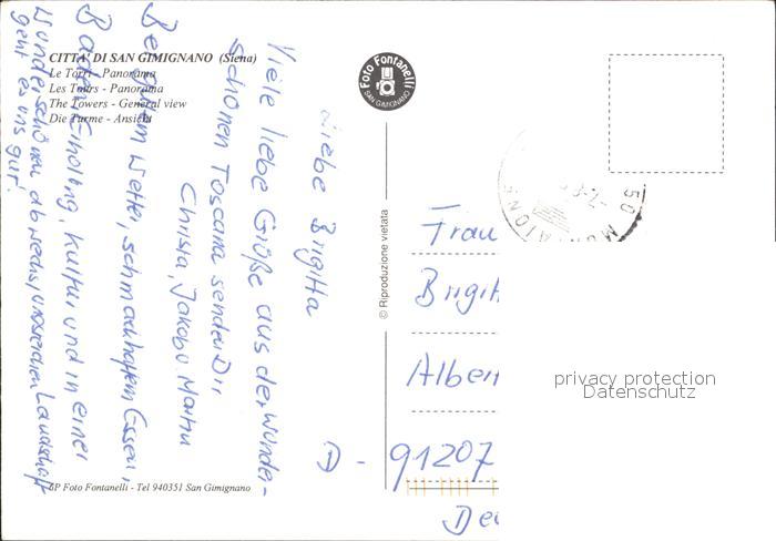 old postcard San Gimignano T?rme postalisch gelaufen Erhaltung siehe scans