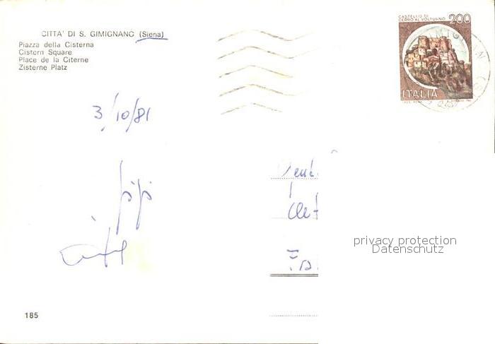 old postcard San Gimignano Zisterne Platz postalisch gelaufen Erhaltung siehe scans