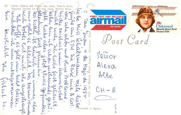 73918536 old postcard San Juan Puerto Rico Calle tipica del Viejo postalisch gelaufen Erhaltung siehe scans [WerneD78] KatCode: 16200