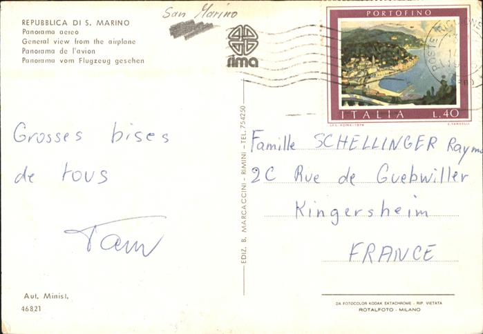 old postcard San Marino Panorama aereo postalisch gelaufen gute Erhaltung