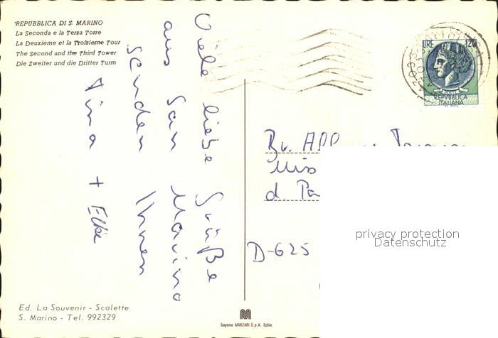 old postcard San Marino Repubblica Fliegeraufnahme La Seconda e la Terza Torre postalisch gelaufen Erhaltung siehe scans
