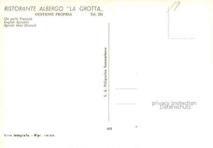 73730480 San Marino Repubblica Ristorante Albergo La Grotta Gastraeume postalisch nicht gelaufen Erhaltung siehe scans [WerneD78] Wern Katcode 11450