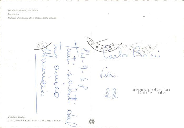 old postcard San Marino Repubblica Seconda torre e panorama Palazzo dei Reggenti e Statua della Liberta postalisch gelaufen Erhaltung siehe scans