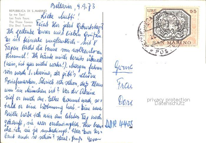 old postcard San Marino Repubblica Terra della liberta le tre Torri postalisch gelaufen Erhaltung siehe scans