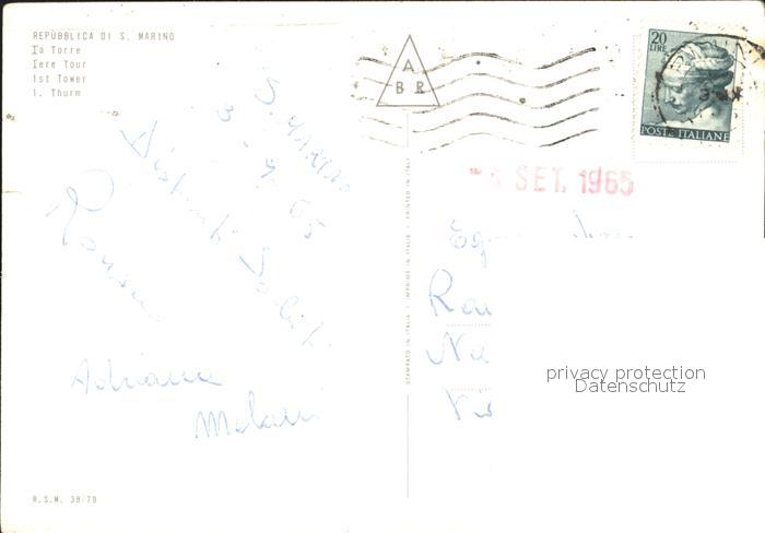 old postcard San Marino San Marino La Torre Monte Titano postalisch gelaufen Erhaltung siehe scans