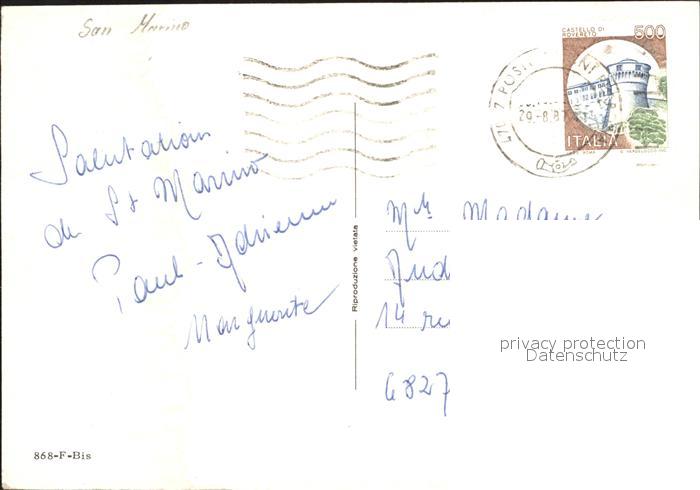 old postcard San Marino San Marino mit Burg und Gardesoldaten postalisch gelaufen Erhaltung siehe scans