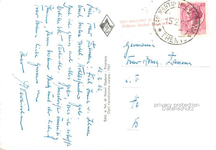 73730361 San Martino di Castrozza Palace Hotel Sass Maor postalisch gelaufen Erhaltung siehe scans [WerneD78] old postcard Wern Katcode 11240